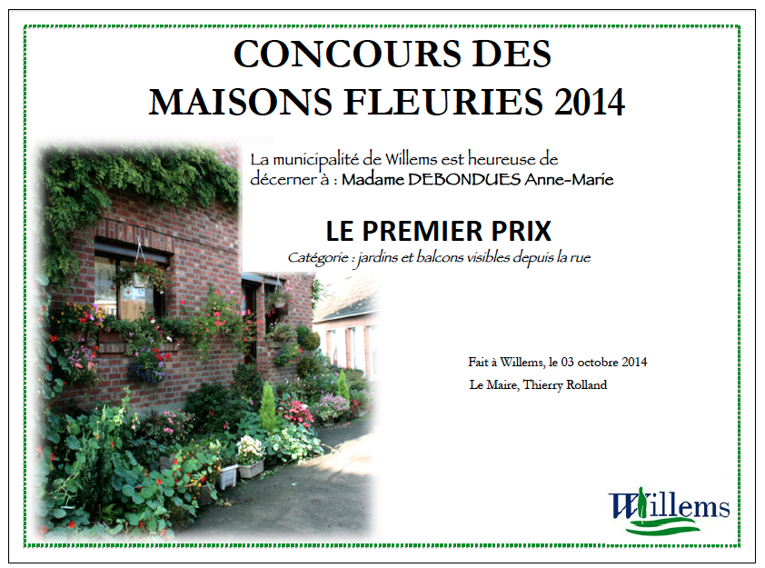 Concours des maisons fleuries 2014 Le Premier prix