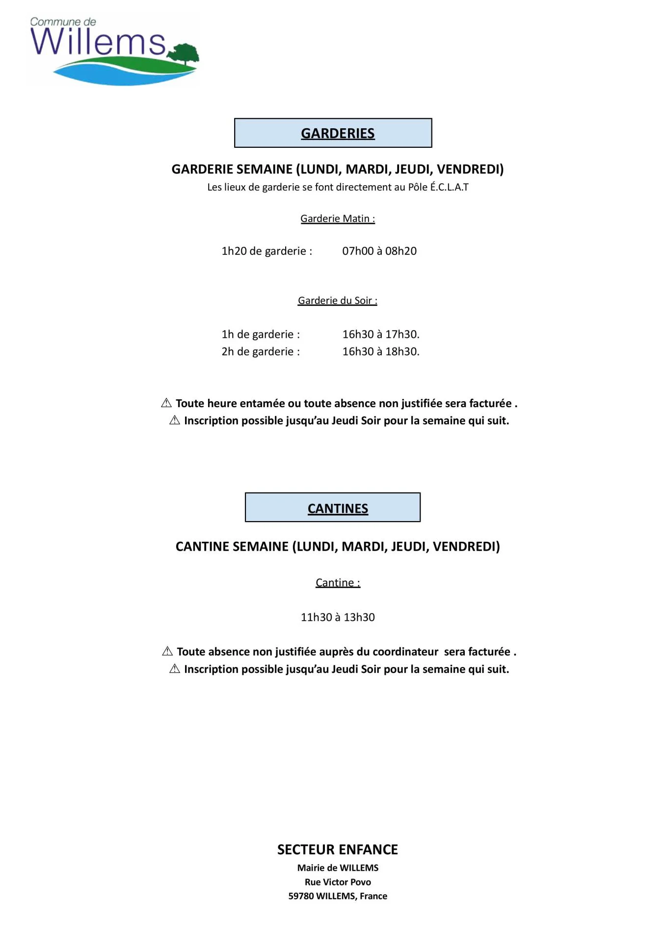 Attention : Les inscriptions sont possible jusqu'au jeudi soir pour la semaine suivante.